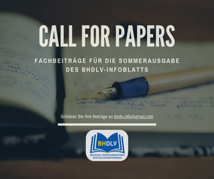 📢 Call for Papers – Fachbeiträge zum Unterricht Deutsch als Fremdsprache (DaF) Der Bosnisch-Herzegowinische Deutschlehrerverband (BHDLV) lädt Lehrkräfte, Hochschuldozierende, Forschende sowie Expert:innen aus der Praxis herzlich dazu ein, Fachbeiträge zur Veröffentlichung im Infoblatt des BHDLV einzureichen. Ziel dieses Calls for Papers ist es, den Austausch von Erfahrungen, Ideen, Forschungsergebnissen und Praxisbeispielen zu fördern sowie einen…